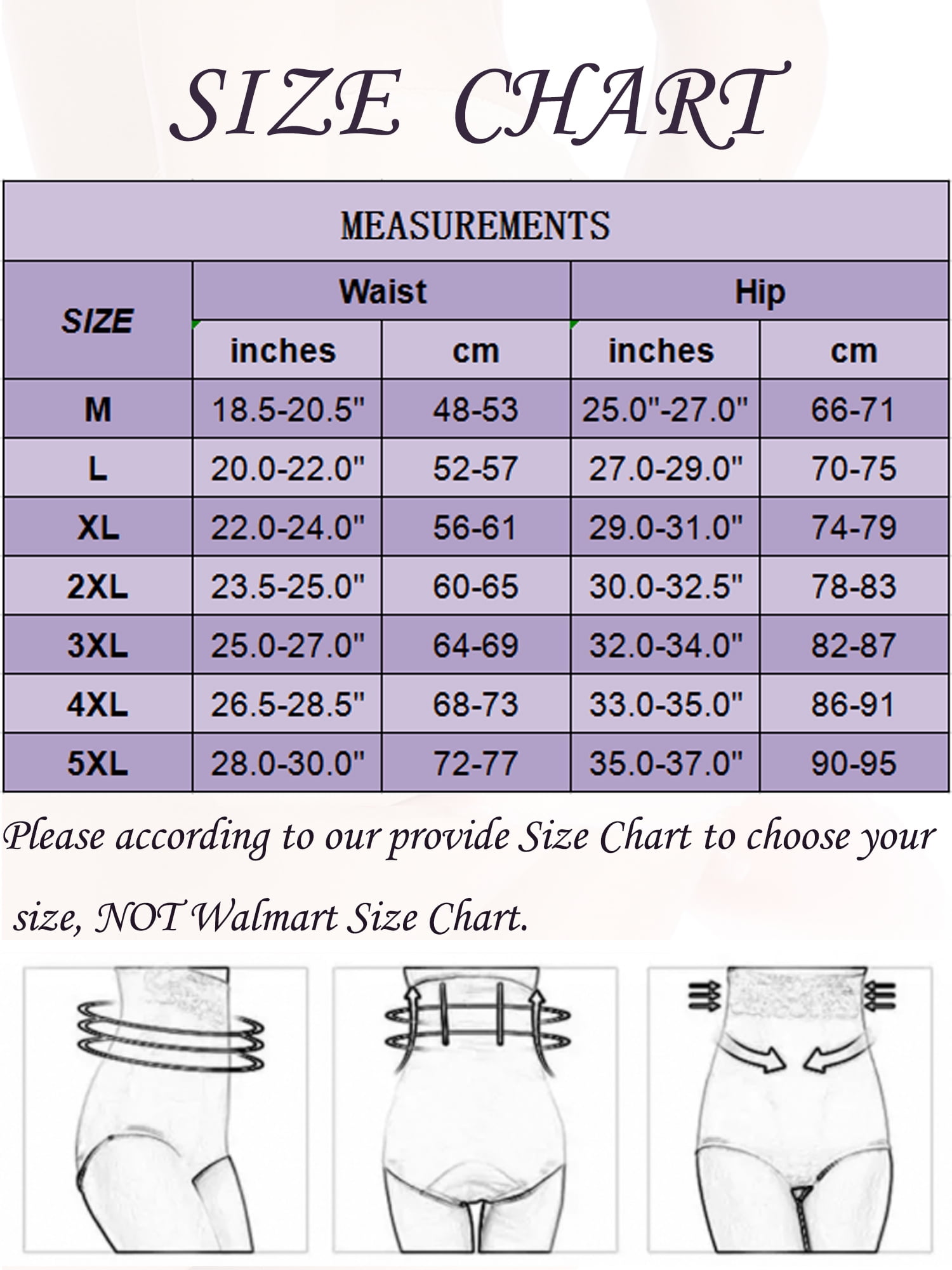Size Chart Trophy Shapewear